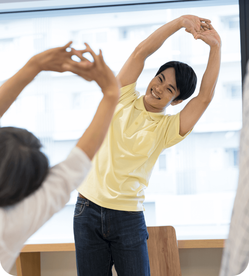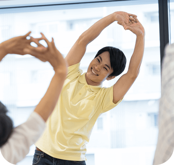 コンディショニングトレーナーは、筋肉を「鍛える」のではなく「整える」ことを重視し、コンディションのサポートを行います。主にストレッチや軽い運動を通じて、姿勢の改善・筋肉の柔軟性の向上・関節の可動域拡大などを目的とした指導を行います。